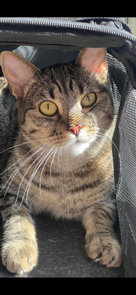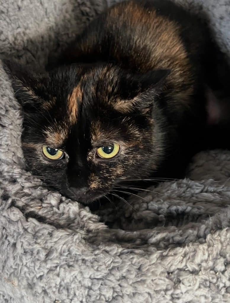 Poor Jolene had a home and home life until she was left out in a yard with her friends. Sadly she gave birth as we were asked to take the 3 adults. She was only a kitten herself and didn’t take well to feeding so we shared the care. She was taken away from them earlier than we normally separate them. She is terrified of what’s next, she grizzles but there’s never been any claws or teeth! She just needs someone with time and patience to show her she can be loved again.